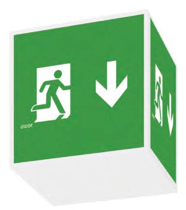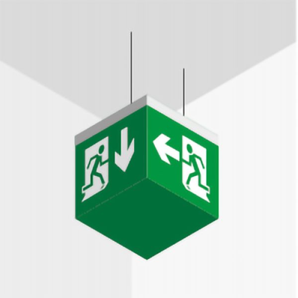 Négyoldalú kijáratmutató lámpa.