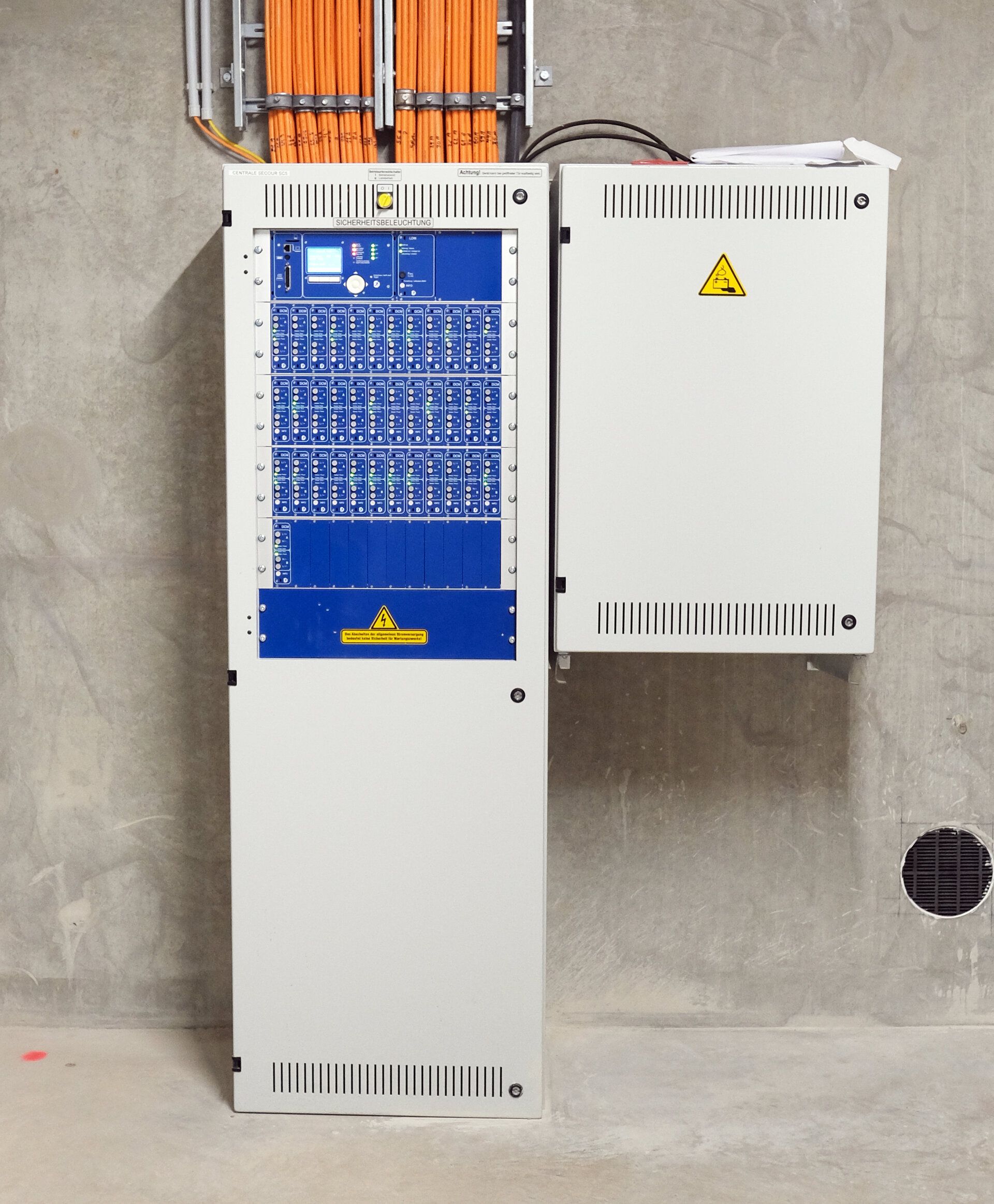 A beépített automatikus tesztelési lehetőségnek köszönhetően így rendszerenként akár 1920 lámpatestet lehet ellátni, felügyelni és kezelni. A MultiControl plus rendszerhez rendelkezésre álló kiterjedt szekrényrendszer segítségével a teljes felügyeleti rendszer a legkülönbözőbb épületjellemzőkhöz igazítható és integrálható. Az elektronika és az akkumulátorok számára különböző falra szerelhető és álló szekrények, valamint a kettőt egy házban egyesítő kompakt szekrények közül lehet választani.