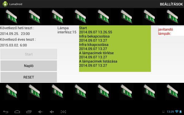 - A lámpák töltéshibájának és kommunikációs hibájának „online” jelzése.